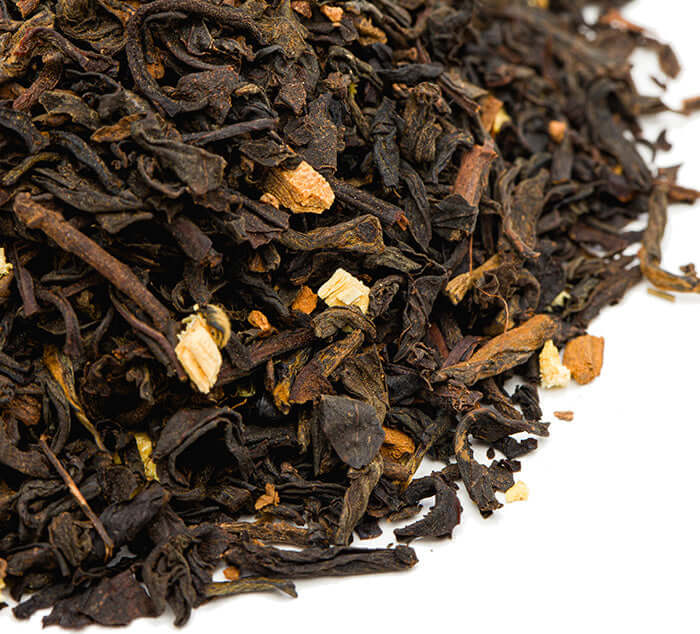 Ingredients: organic black tea, organic pu'er tea, organic licorice root, organic cinnamon, organic nutmeg, natural vanilla flavor, organic orange peel