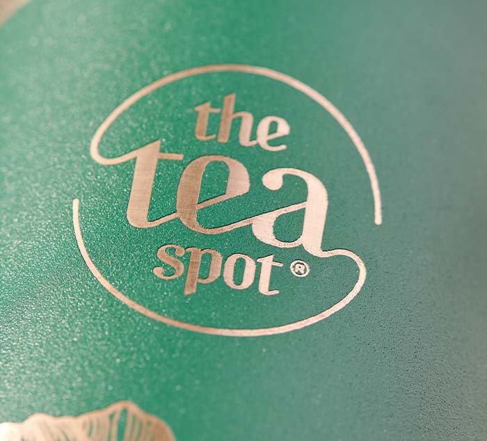 - Laser-etched tea leaf design