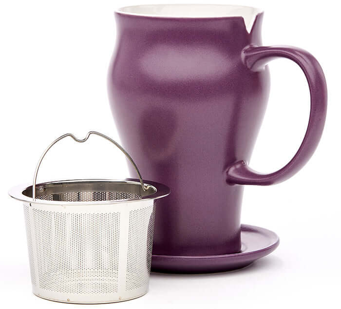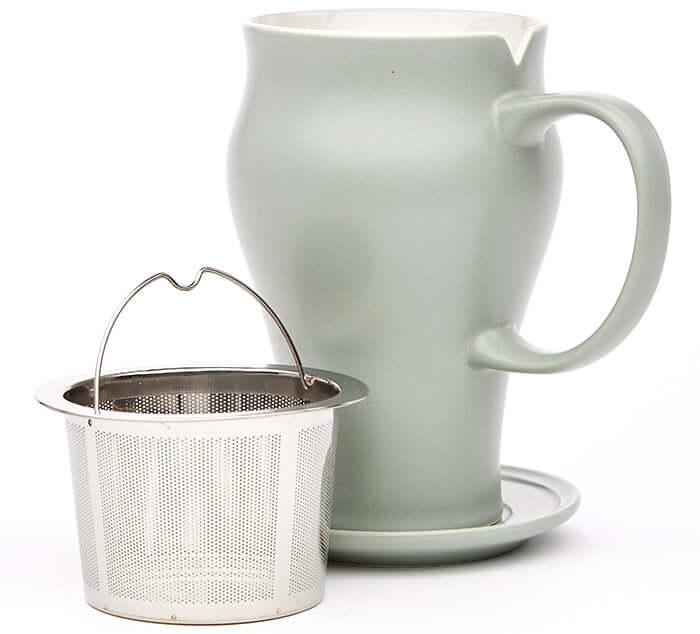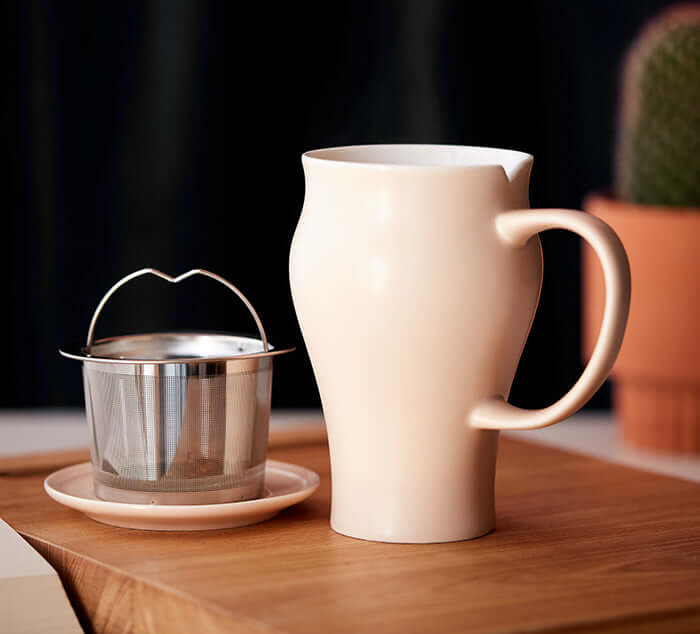 Finally, a mug that understands your daily tea needs. This handcrafted ceramic mug is equipped with a high-quality stainless steel infuser, specially designed for brewing loose leaf teas. Once you're done steeping, the infuser fits neatly into the accompanying saucer, which also doubles as a lid to keep your tea warm.