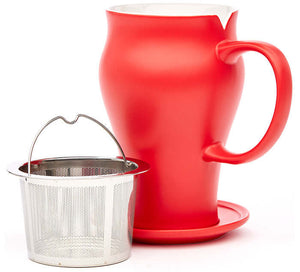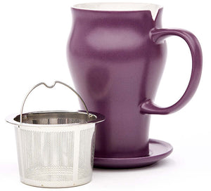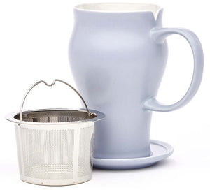 Finally, a mug that understands your daily tea needs. This handcrafted ceramic mug is equipped with a high-quality stainless steel infuser, specially designed for brewing loose leaf teas. Once you're done steeping, the infuser fits neatly into the accompanying saucer, which also doubles as a lid to keep your tea warm.