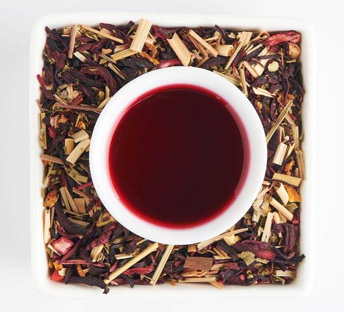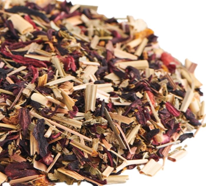 Ingredients: hibiscus, lemongrass, orange peel, blackberry leaf, natural flavors, goji berry powder, beetroot powder