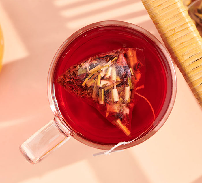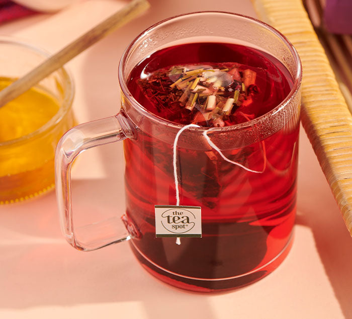 A vibrant pink blend bursting with tart hibiscus, citrusy lemongrass, and fruity goji berries—Summer Solstice is your go-to caffeine-free tea for sipping under the sun. Available in loose leaf, sachets, and XL iced tea pouches.